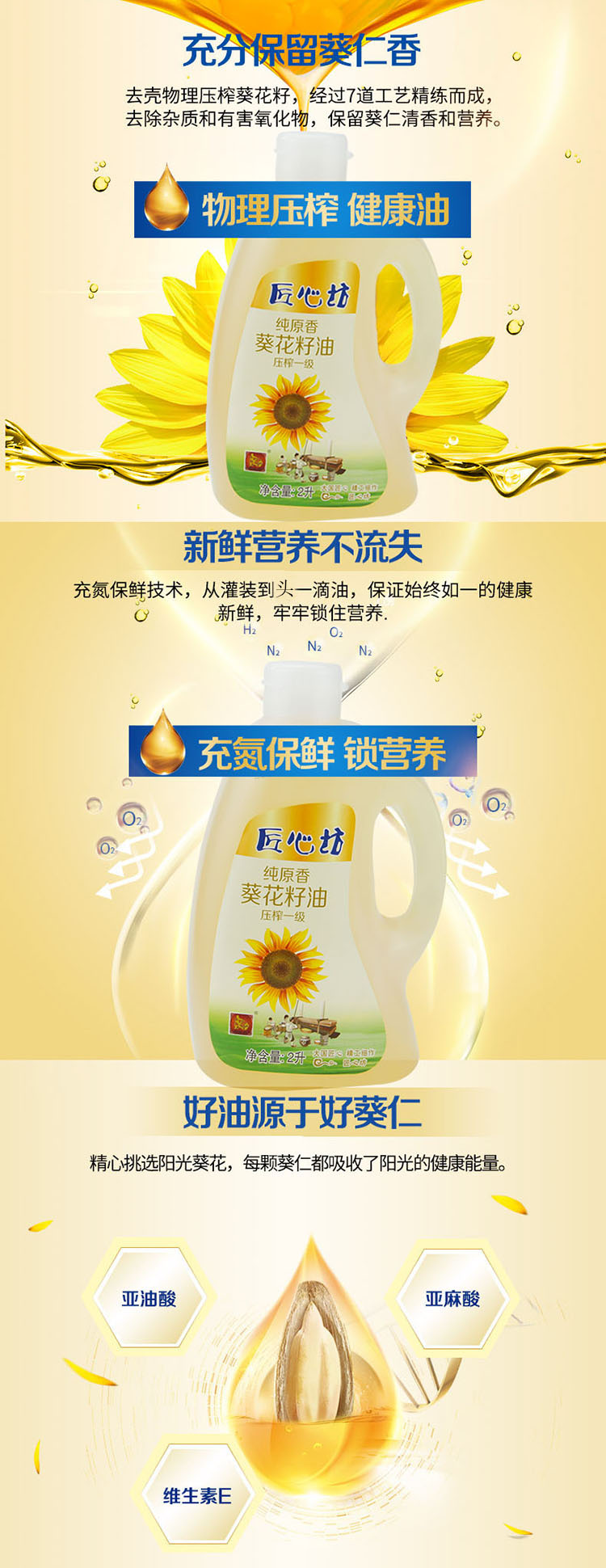 匠心坊2升小瓶裝葵花籽油物理壓榨一級2L*4不漏油嘴一箱裝